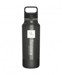 25 oz double wall 18/8 stainless steel thermal bottle with copper vacuum insulation, threaded one-touch push-button lid, locking mechanism, carrying handle, and rubberized base - patent pending - gift box included; Hand wash recommended; Do not microwave; 11 h x 3 w ; 739mL.