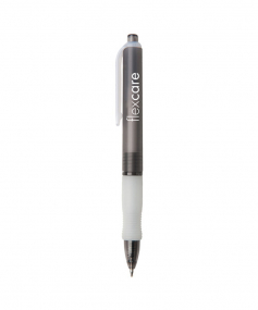 Wide body retractable gel pen with rubber grip. Ferrule and plunger with natural clip and grip. Protective ballpoint covering included. High quality Gel ink. 5 3/4" L x 15/32" Diameter.