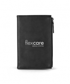 Stylish executive notebook with PU/split leather outer and suede inner cover. Features large zipper pocket (fits up to iPhone 7S Plus). Includes 80-sheet replaceable notebook. 5 3/4" H x 8 1/2" H